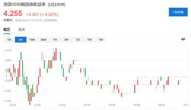 美债市场周二亚太时段变动不大,10年期收益率小幅上行0.1基点,报4.255%。