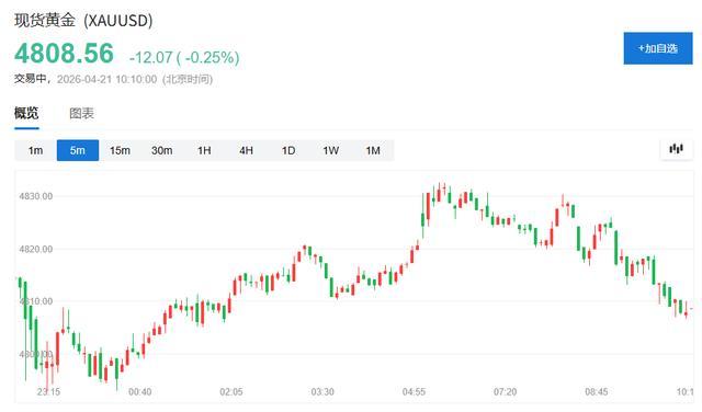 标普500指数期货上涨0.2%,此前该指数周一从历史高位小幅回落。黄金现货价格小跌0.25%至4810美元下方。